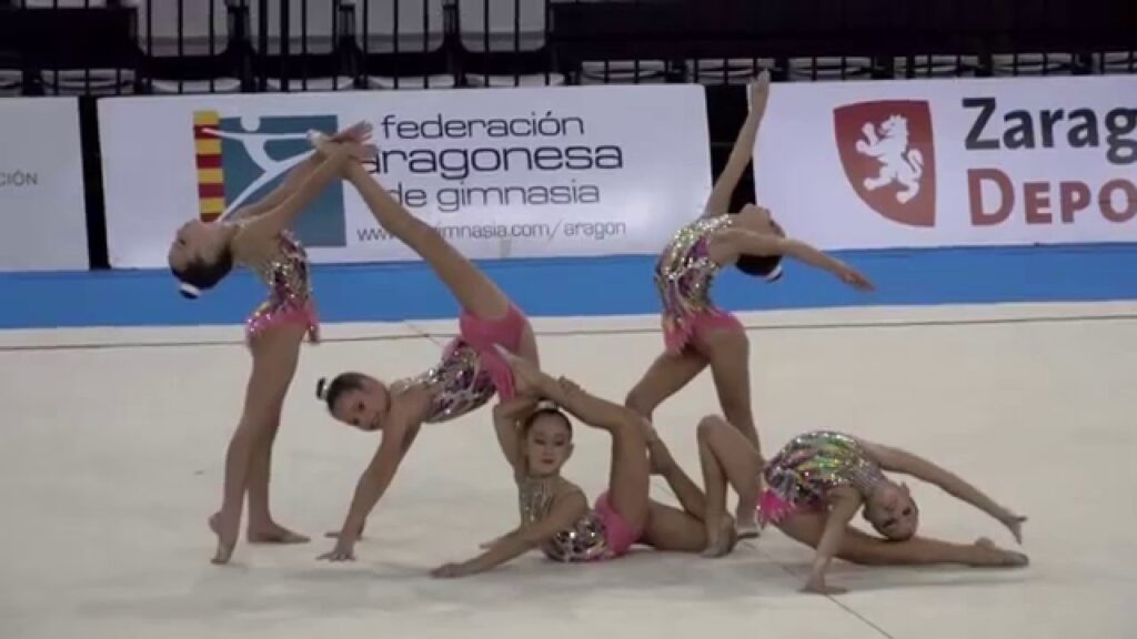 Una actuación en grupo, o de conjunto, es una modalidad de la gimnasia rítmica donde cinco gimnastas realizan una rutina coreografiada y sincronizada utilizando aparatos. Requiere una gran coordinación, trabajo en equipo y precisión en la manipulación de los aparatos entre las integrantes del equipo.