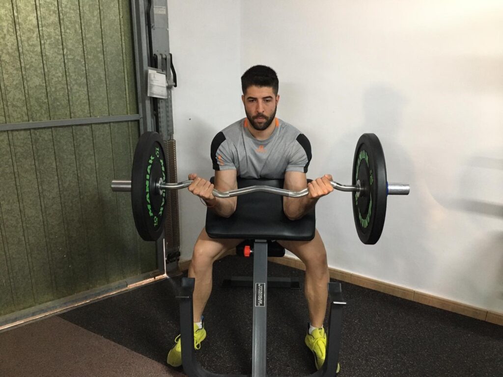 El banco predicador fija tus codos adelante y arriba, creando una excelente posición para la cabeza corta y eliminando la posibilidad de usar impulso.