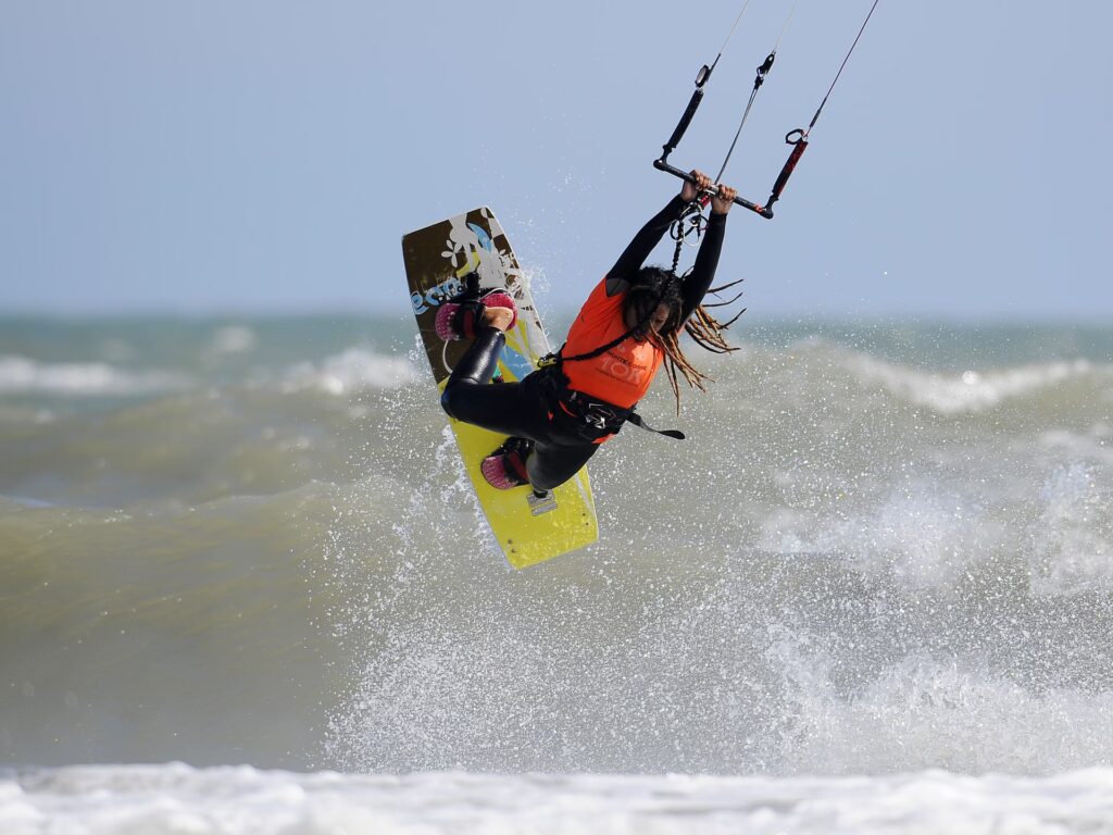 El desafío constante de aprender nuevas técnicas, superar miedos y mejorar habilidades también contribuye a una mayor confianza en uno mismo. Cada pequeña victoria en el agua, ya sea lograr mantener el rumbo, girar correctamente o dar un pequeño salto, refuerza la autoestima. Además, el kitesurf a menudo se practica en comunidades vibrantes y solidarias, lo que facilita la creación de nuevas amistades y el sentido de pertenencia. Aunque pueda parecer un deporte dominado por hombres, cada vez más mujeres se animan a practicarlo, encontrando en él una fuente de empoderamiento y superando cualquier posible inseguridad.