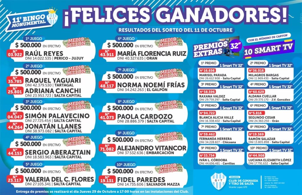 El bingo de Gimnasia y Tiro de Salta trasciende la simple oportunidad de ganar premios. Se ha convertido en un evento social que reúne a socios, hinchas, vecinos y simpatizantes en un espacio compartido. Es una manifestación del vínculo emocional que une a la comunidad con su club. Comprar un cartón de bingo es un gesto de apoyo, una declaración de compromiso con los valores y objetivos que representa la institución.