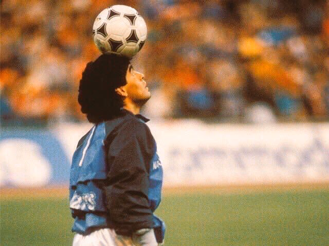 La escena tuvo lugar el 19 de abril de 1989, en el estadio del Bayern Múnich, justo antes del partido de vuelta de las semifinales de la Copa de la UEFA entre el S.S.C. Napoli y el equipo alemán. Mientras la mayoría de los jugadores calentaban de forma tradicional, concentrados y serios (como describió Jürgen Klinsmann, jugador del Bayern en aquel entonces), Maradona salió al campo para realizar su propio calentamiento. Lo que siguió fue pura magia.
