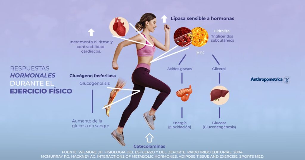 El ejercicio influye en la producción y regulación de numerosas hormonas que afectan directamente el metabolismo:
