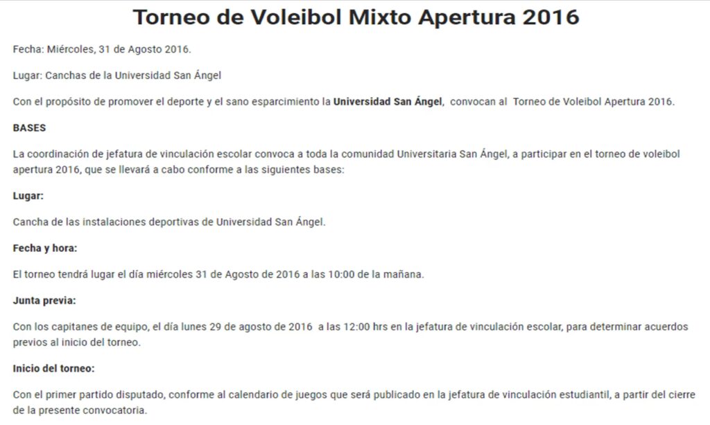 ¿Qué partes lleva una convocatoria deportiva?