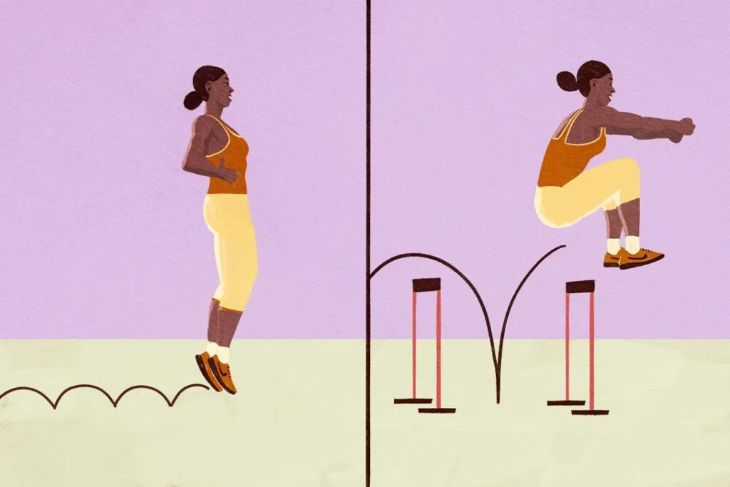 - Saltos de baja intensidad: Preparan el cuerpo y pueden realizarse durante periodos más largos o como parte de un calentamiento dinámico. Incluyen saltos con cuerda (comba), saltos suaves en el sitio, y saltos lineales simples sin gran altura (como un pequeño salto sobre una línea marcada en el suelo).