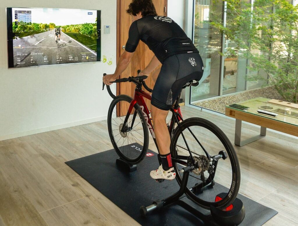 Además, puedes conectarte a aplicaciones de ciclismo en línea que ofrecen mundos virtuales 3D, rutas escaneadas de lugares reales o entrenamientos estructurados acompañados de videos. Estas plataformas a menudo permiten interactuar con otros ciclistas de todo el mundo, competir en carreras virtuales o simplemente rodar juntos. Esta inmersión no solo aumenta la diversión y reduce la monotonía del entrenamiento en interiores, sino que también incrementa el compromiso con los entrenamientos. Los desafíos realistas y la interacción social te motivan y te permiten disfrutar del ciclismo como nunca antes desde la comodidad de tu casa, haciendo que el tiempo de entrenamiento pase más rápido y sea más efectivo.